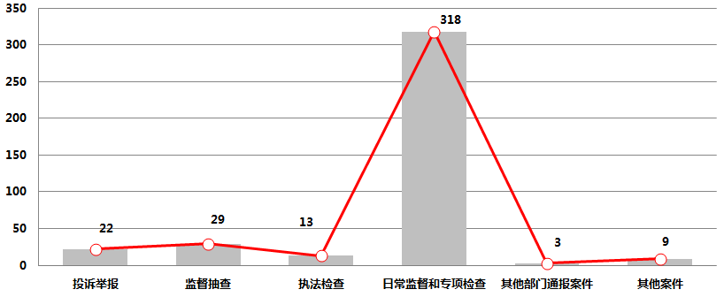 图5-3-1 2017年全省J9九游会娱乐案件来源分布图 三、J9九游会娱乐日常监管情况(一)J9九游会娱乐生产日常监管情况2017年,全省各级食品药品监管机构检查J9九游会娱乐生产企业539家次,其中生产一类J9九游会娱乐产品的生产企业175家次,其中未通过检查10家,未通过率5.7%;生产二类J9九游会娱乐产品的生产企业293家次,其中未通过检查7家,未通过率2.4%;生产三类J9九游会娱乐产品的生产企业104家次,其中未通过检查7家,未通过率6.7%;检查国家重点监管企业64家次,省重点监管企业104家次。全面检查高风险企业,含无菌J9九游会娱乐的生产企业82家,其中未通过检查9家,未通过率11%;含植入性J9九游会娱乐的生产企业12家,未通过检查1家,未通过率8.3%;第三类J9九游会娱乐的生产企业67家,未通过检查4家,未通过率6%。存在违法违规的生产企业25家次,完成整改的生产企业55家次,移交稽查部门的生产企业5家次。 (二)J9九游会娱乐经营、使用日常监管情况2017年,全省各级食品药品监管机构检查经营企业、使用单位家次36575家次,其中经营企业16482家次,使用单位20093家次。省级及以下组织J9九游会娱乐经营企业飞行检查489家次。存在违规行为的企业或单位1730家次,其中经营企业891家次,使用单位839家次。完成整改的企业或单位2297家次,其中经营企业1399家次,使用单位898家次。移交稽查部门立案查处285家,其中经营企业92家,使用单位193家,移交卫生部门处理的单位29家。 四、J9九游会娱乐投诉举报情况2017年,全省共受理J9九游会娱乐投诉举报303件,占投诉举报总量(食品、保健食品、药品、J9九游会娱乐、化妆品)的1.4%。立案23件,结案24件。 附表 附表1 食品经营许可情况